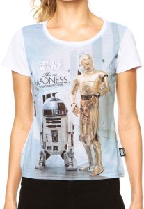 - Women’s R2-D2 and C-3PO t-shirt – R$59.90 each – sizes M, G