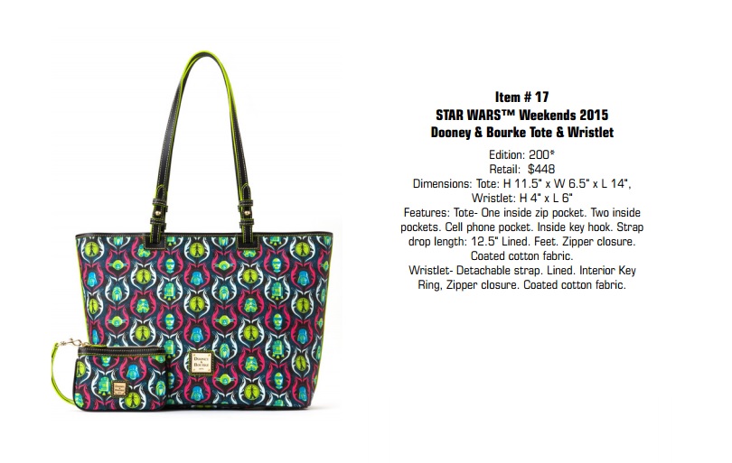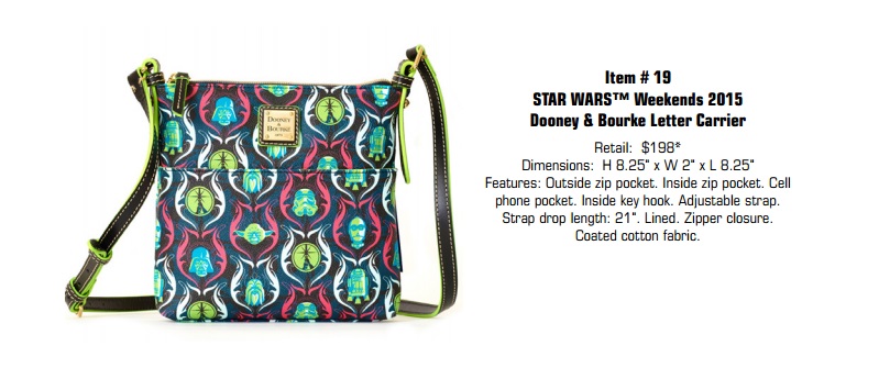 Also available at Star Wars Weekends will be the new range of Dooney & Bourke Star Wars handbags, prices range from US$98 to US$448. Using the same pattern as the earlier RunDisney exclusive handbags, this range includes new handbag styles.