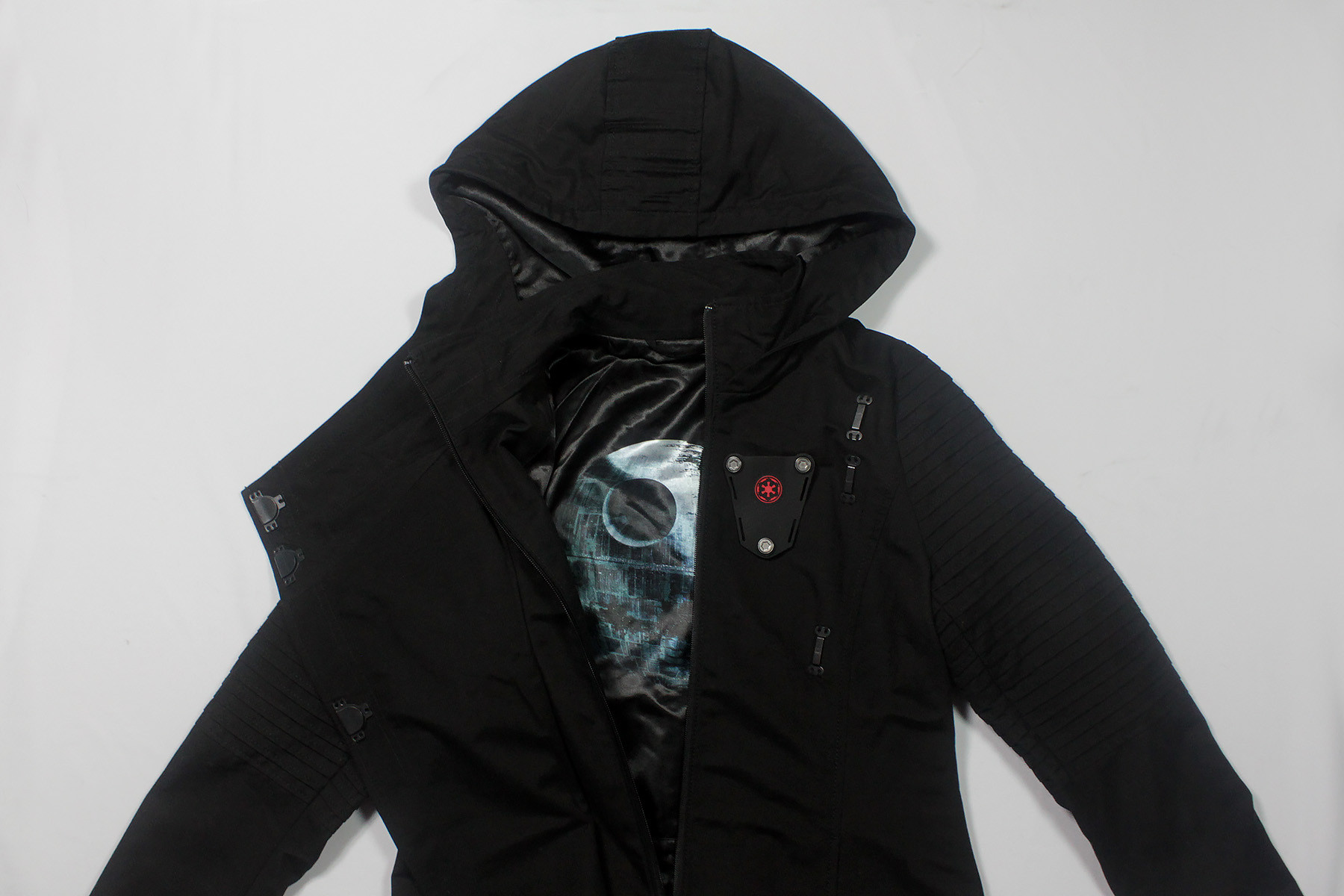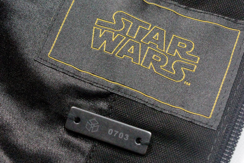 Another fantastic example of a limited edition item is the Musterbrand Sith Lady limited edition coat. As well as having a different printed lining fabric to the standard edition, this version also includes a specially numbered plaque on the inside. Despite the fact that limited edition numbered items are not rare in Star Wars collecting in general, there are not very many examples of it within the fashion range.