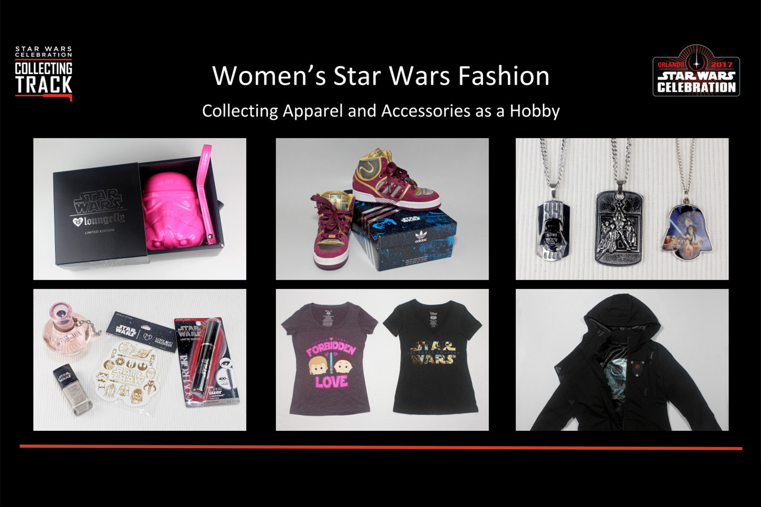 On the first day of the Star Wars Celebration Orlando convention, I presented my panel, ‘The Growing Galaxy of Women’s Star Wars Fashion’, as part of the Collecting Track. Here is the full description, as presented in the convention program –
