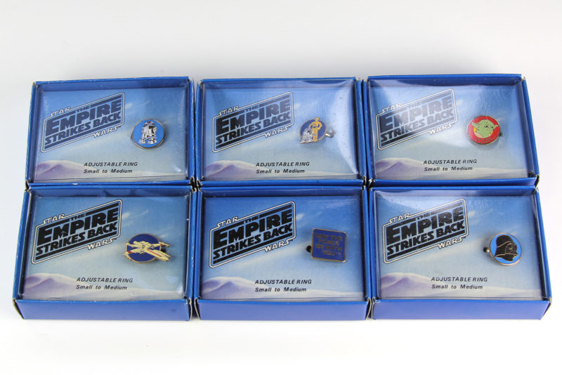 Wallace Berrie took over the jewellery license for The Empire Strikes Back products in 1980. Their range included some character necklaces, as well as a range of rings. This range uses enamel pictures rather than 3-D sculpts of the 1977 range, but the accuracy and detail is still very good.