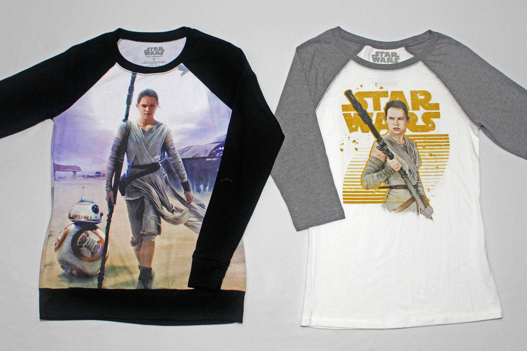 It was of course fantastic to see the new lead female character Rey being so well represented in fashion. It has shown that female character themed fashion is popular, that we don’t need to rely on the traditional R2-D2 or Darth Vader. These 2 tops are both by Her Universe – The one on the left was released at Disney Parks while the one on the right was released on the Her Universe website.