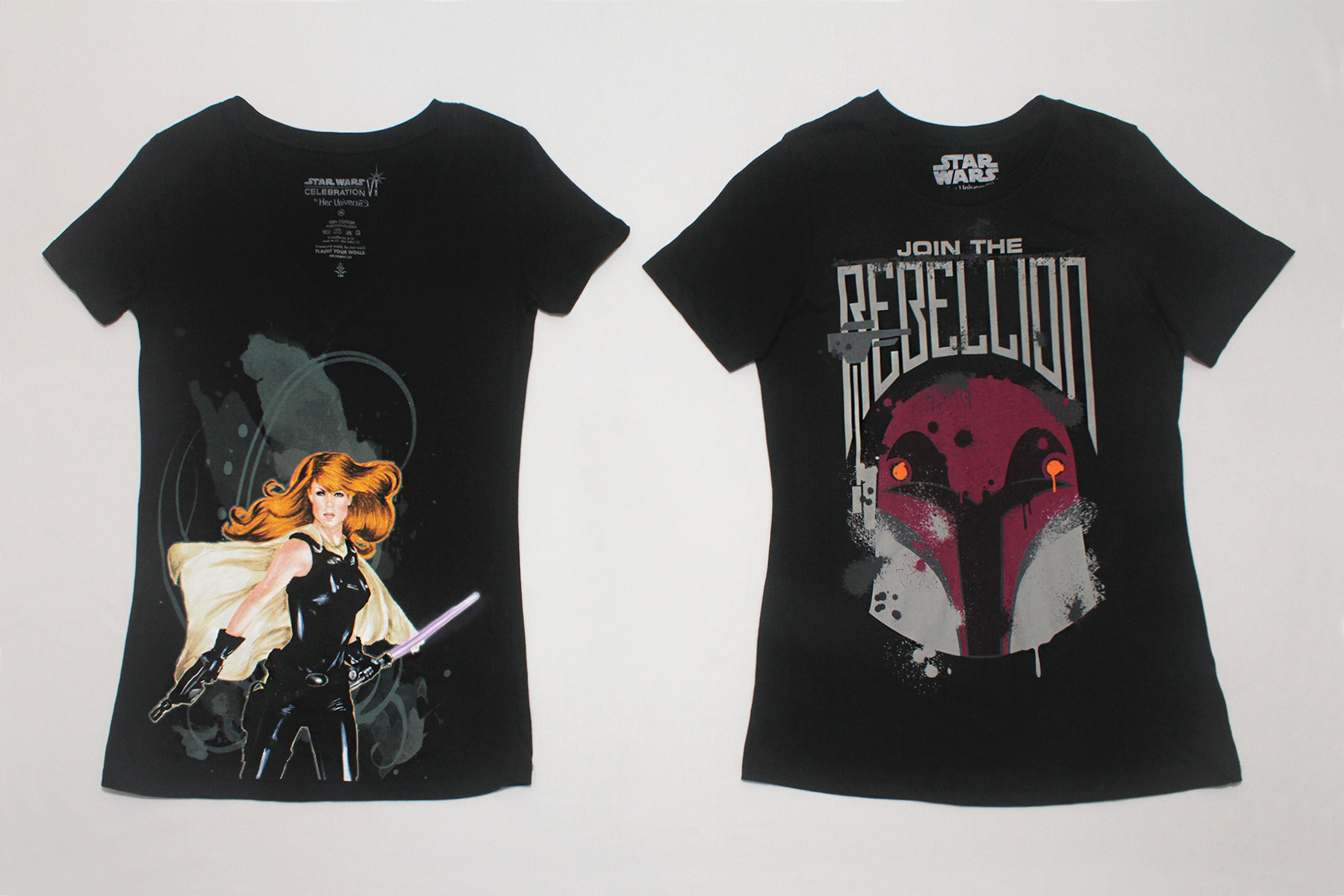 It is great to see Her Universe creating apparel themed on the female characters from Rebels, but I wish that they had taken the opportunity to create apparel of other expanded universe characters before the Disney takeover. Who knows, we may yet see this still happen. It is great to see the new female Rebels characters finally getting themed apparel – like this Sabine tee, and the Hera Syndulla tee in the Celebration Orlando store.