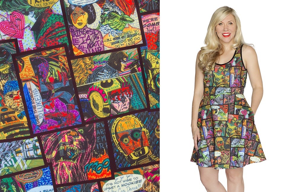 Thinkgeek has a new women’s Her Universe x Star Wars dress available! First released back in March, the colourful skater dress is sewn from an all-over printed fabric of classic style Star Wars comic art, with a ‘doodled’ graffiti effect. The dress is made from stretch scuba fabric, which is a little…