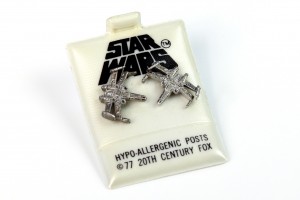 The X-Wing necklace is one of my favourite pieces from Weingeroff Ent. so I was very excited to find the matching stud earrings. They measure approximately 18mm across, 14mm high. I paid US$20 for them on ebay – a little more than the R2-D2/C-3PO earrings, but the X-Wings tend to…