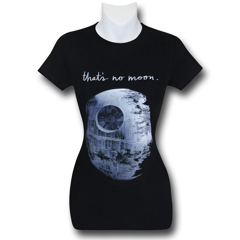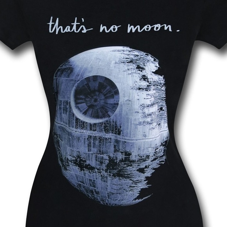 SuperHeroStuff has added a new women’s Star Wars t-shirt to their website. The black t-shirt features an image of the second Death Star from ROTJ, with the text ‘that’s no moon’ printed above (even though that line is from ANH). Available in sizes S to XXL, the t-shirt is priced at US$23.99 each – SuperHeroStuff can ship internationally, and their current website promotion is 15% off with the code ‘AMERICA15’.
