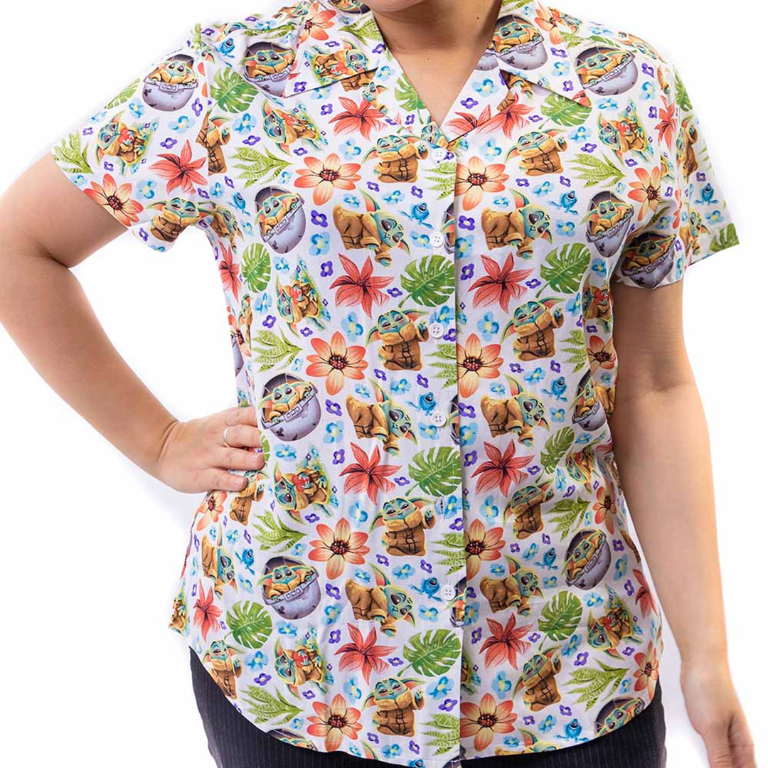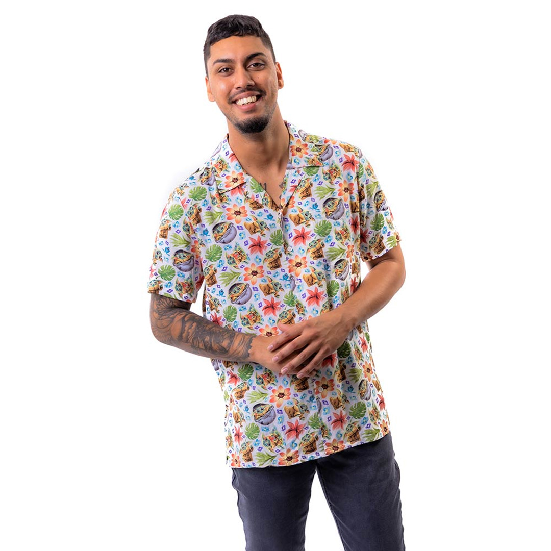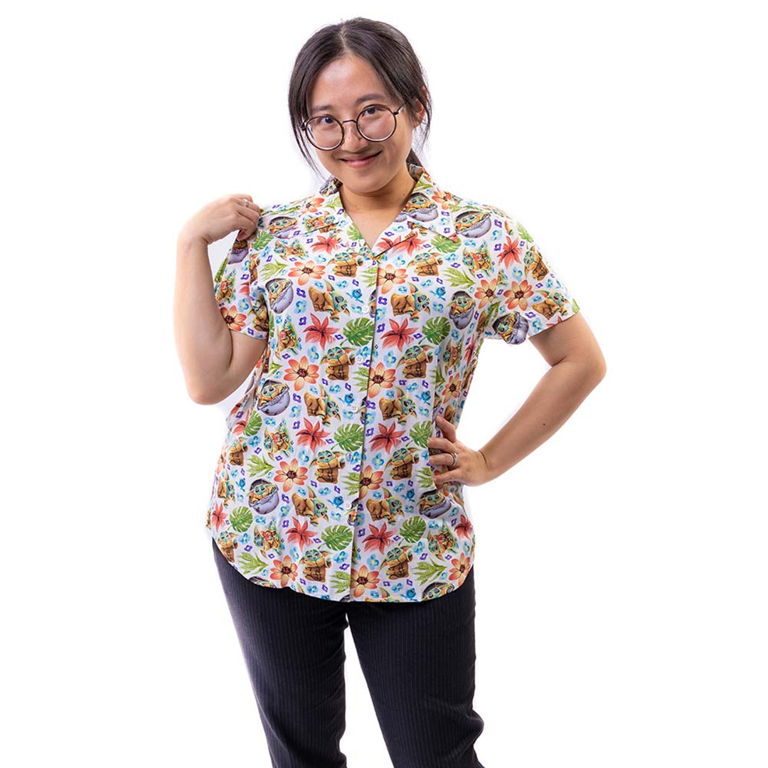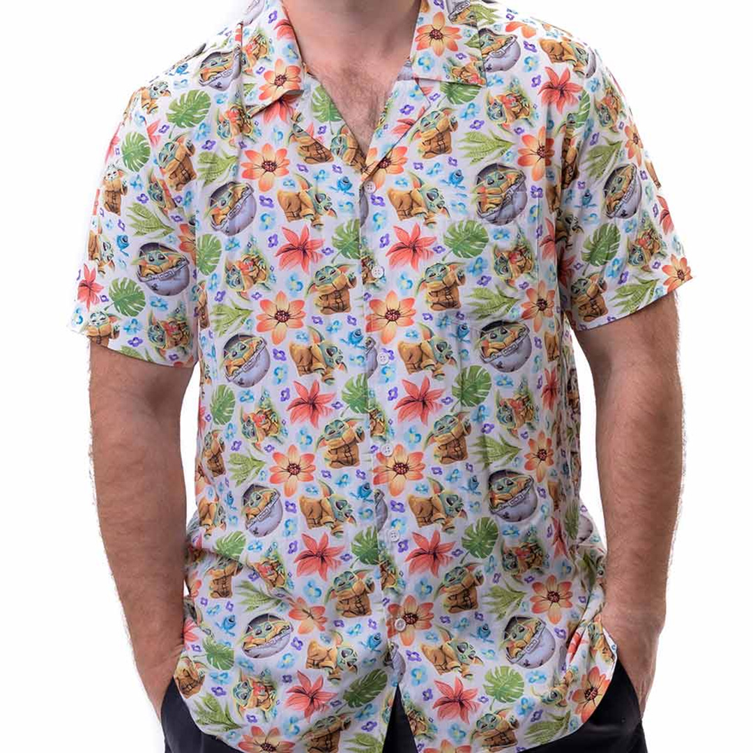 Get ready for summer here in New Zealand with this new The Child floral range of apparel from EB Games NZ. The mini collection includes a women’s button-up shirt, men’s button-up shirt, cap, and mini backpack. The floral print features artwork of Grogu in a variety of poses, scattered among tropical flowers and leaves.