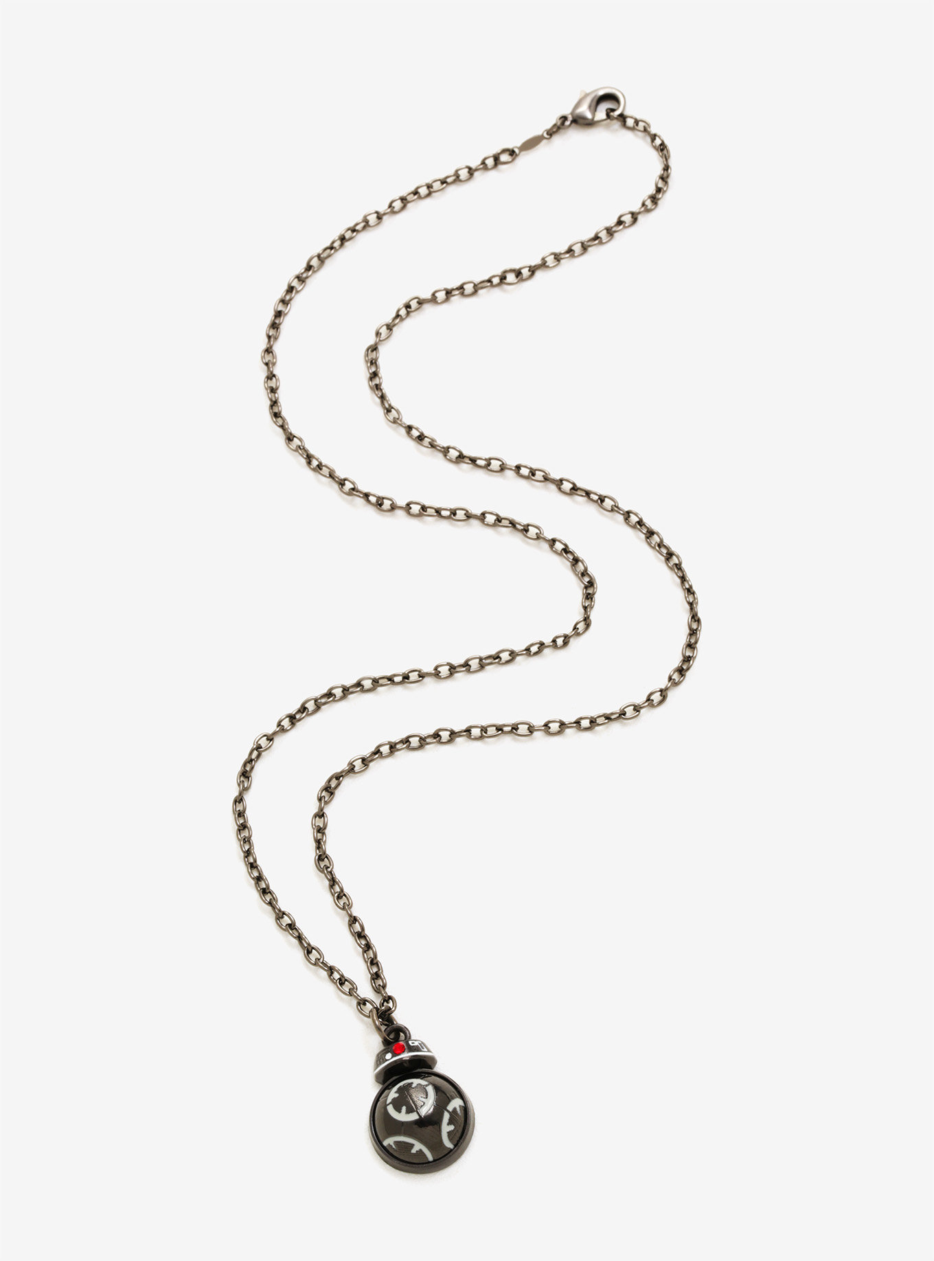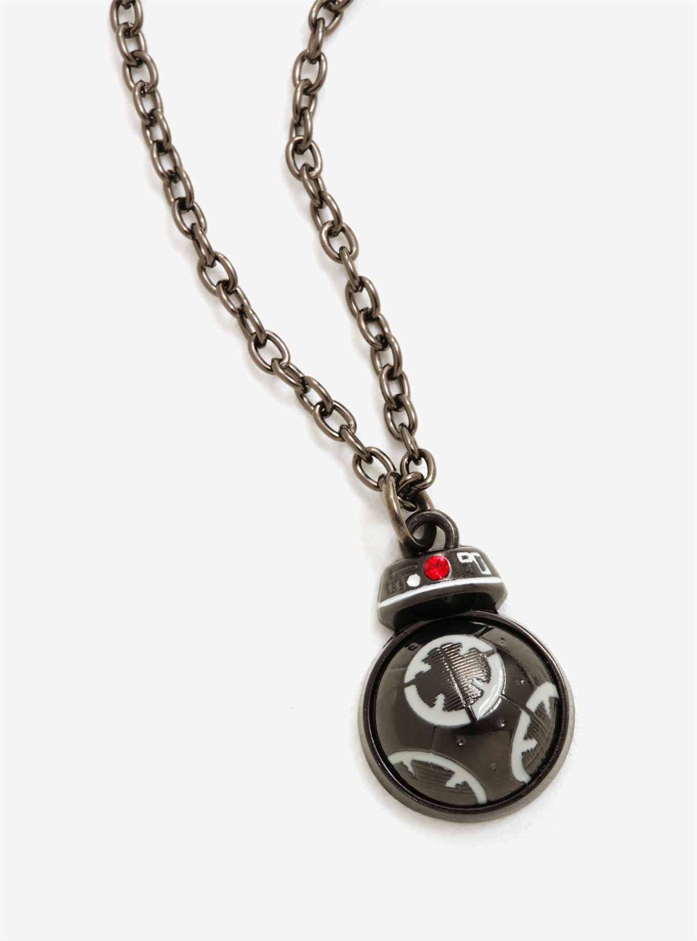 This new Star Wars The Last Jedi BB-9E necklace is now available exclusively at Box Lunch. The dark hematite necklace features the First Order droid BB-9E, with a sculpted pendant accented with a red rhinestone.