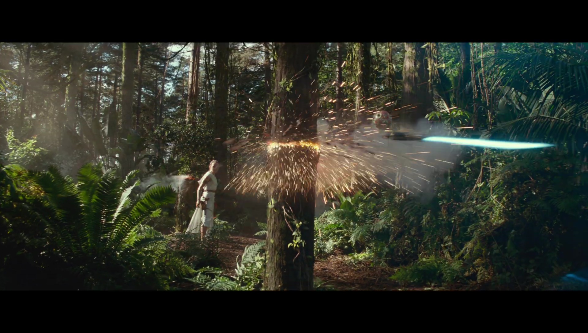 I love this little clip of Rey in a forest, throwing her lightsaber towards a training remote. This doesn’t reveal anything plot-wise – we have already seen Rey practicing with a lightsaber on Ahch-To in The Last Jedi, but this time she is using the Force to propel the lightsaber, and taking down a few trees in the process.