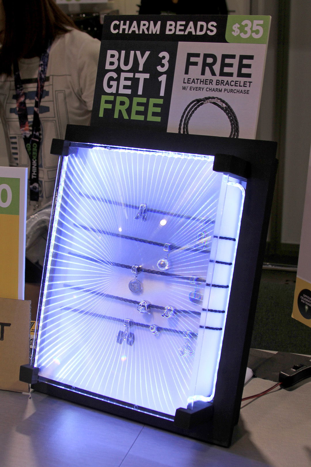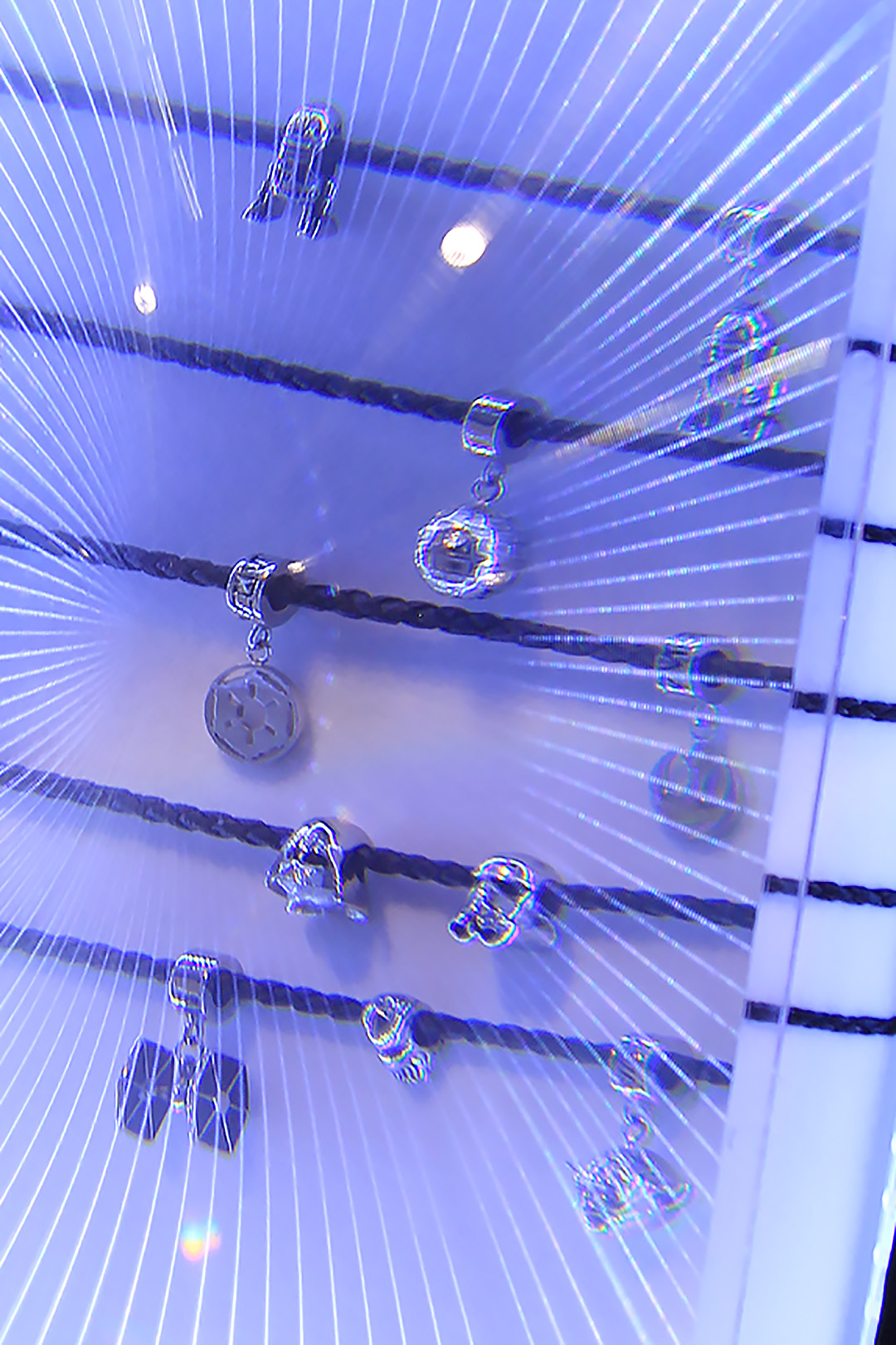 While Thinkgeek stocks many Star Wars apparel items and accessories, they only sold select items at their booth at Celebration Anaheim. I was eager to stop by to pick up the new Death Star charm bead, and was excited to see they also had the rest of their Star Wars charm bead range. Better yet – buy 3, get 1 free! I had originally planned to only buy the new Death Star charm, but I can’t resist a good deal, so I also bought the Imperial logo and Rebel Alliance logo charms, selecting the TIE Fighter charm as my fourth for free! Every charm purchase came with Thinkgeek’s leather charm bracelet, so I was given four of those for free as well. My purchase value qualified me for Thinkgeek’s free Celebration Anaheim pin too – so much free stuff! I’m so happy to be able to add four great new Star Wars charms to my bracelet.