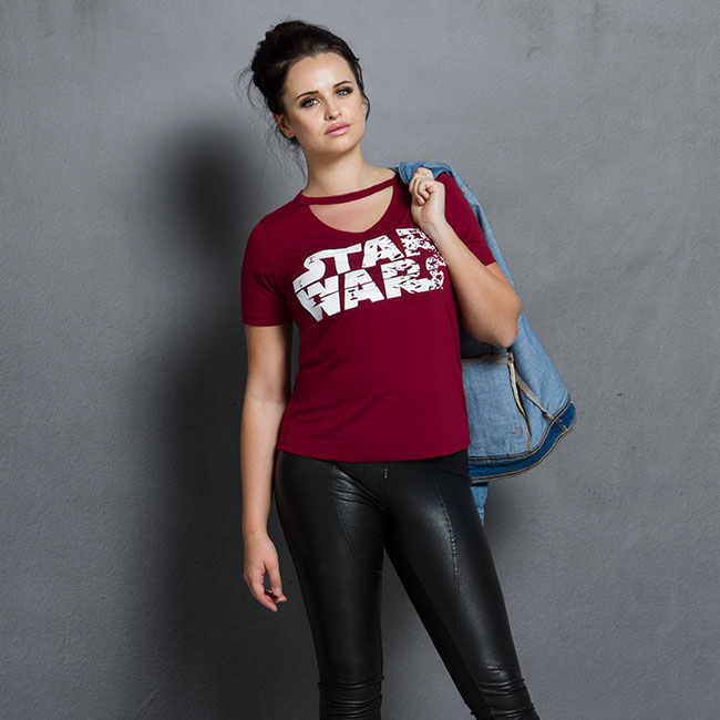 • Women’s The Last Jedi Logo v-neck top – US$29.99 each – sizes S to 3X