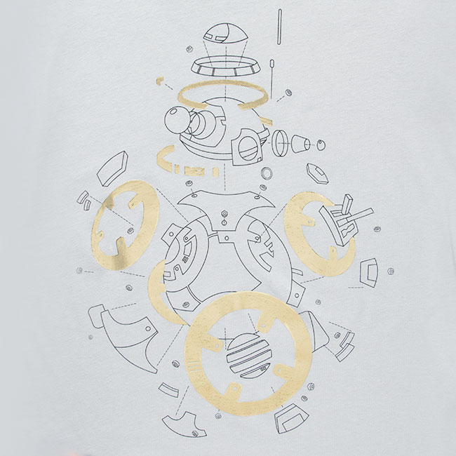 • Women’s BB-8 Diagram Foil t-shirt – US$19.99 each – sizes S to 3X