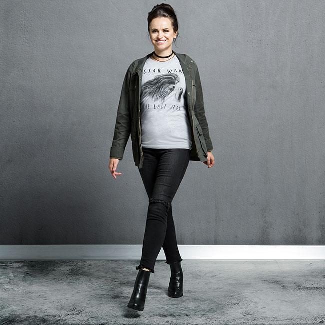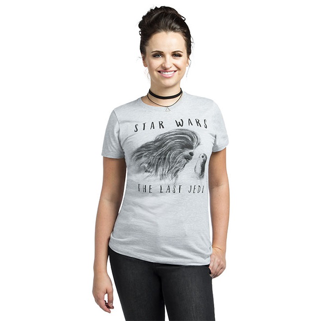 Women's Star Wars The Last Jedi Logo V-Neck Top available exclusively at ThinkGeek - Star Wars Training Mode Collection Women's Star Wars BB-8 Diagram Foil T-shirt available exclusively at ThinkGeek - Star Wars Training Mode Collection Women's Star Wars Chewbacca and Porg T-shirt available exclusively at ThinkGeek - Star Wars Training Mode Collection