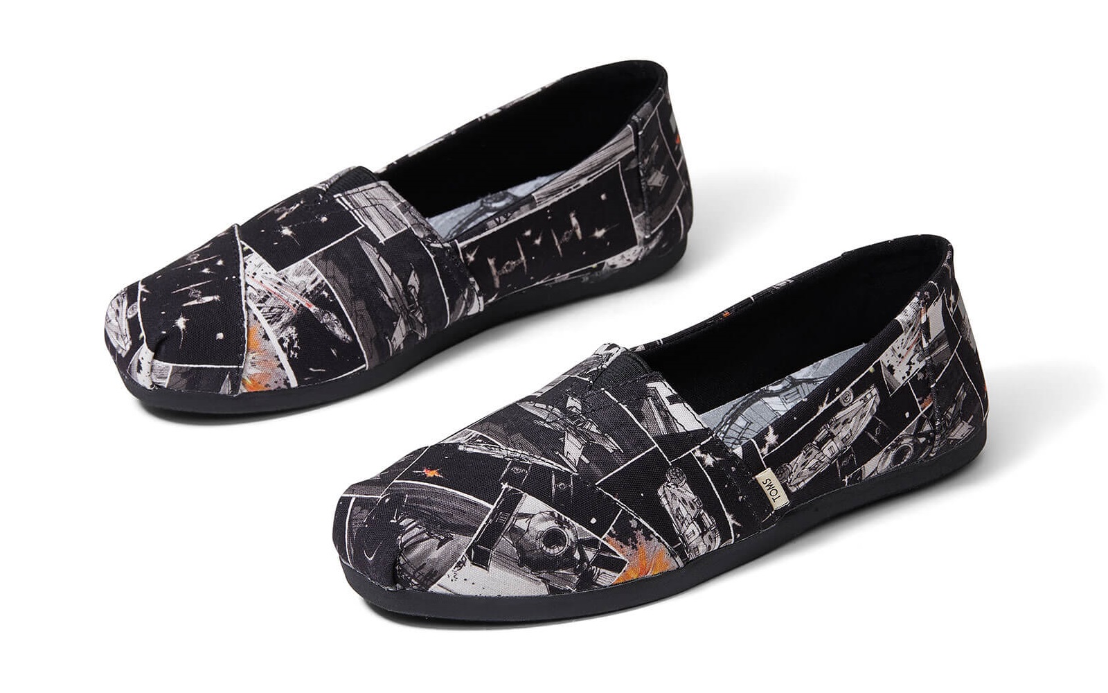 The Toms x Star Wars Summer 2019 footwear collection is now available! Featuring custom artwork with designs inspired by the original trilogy, the range includes flat footwear styles for women, men, and children.