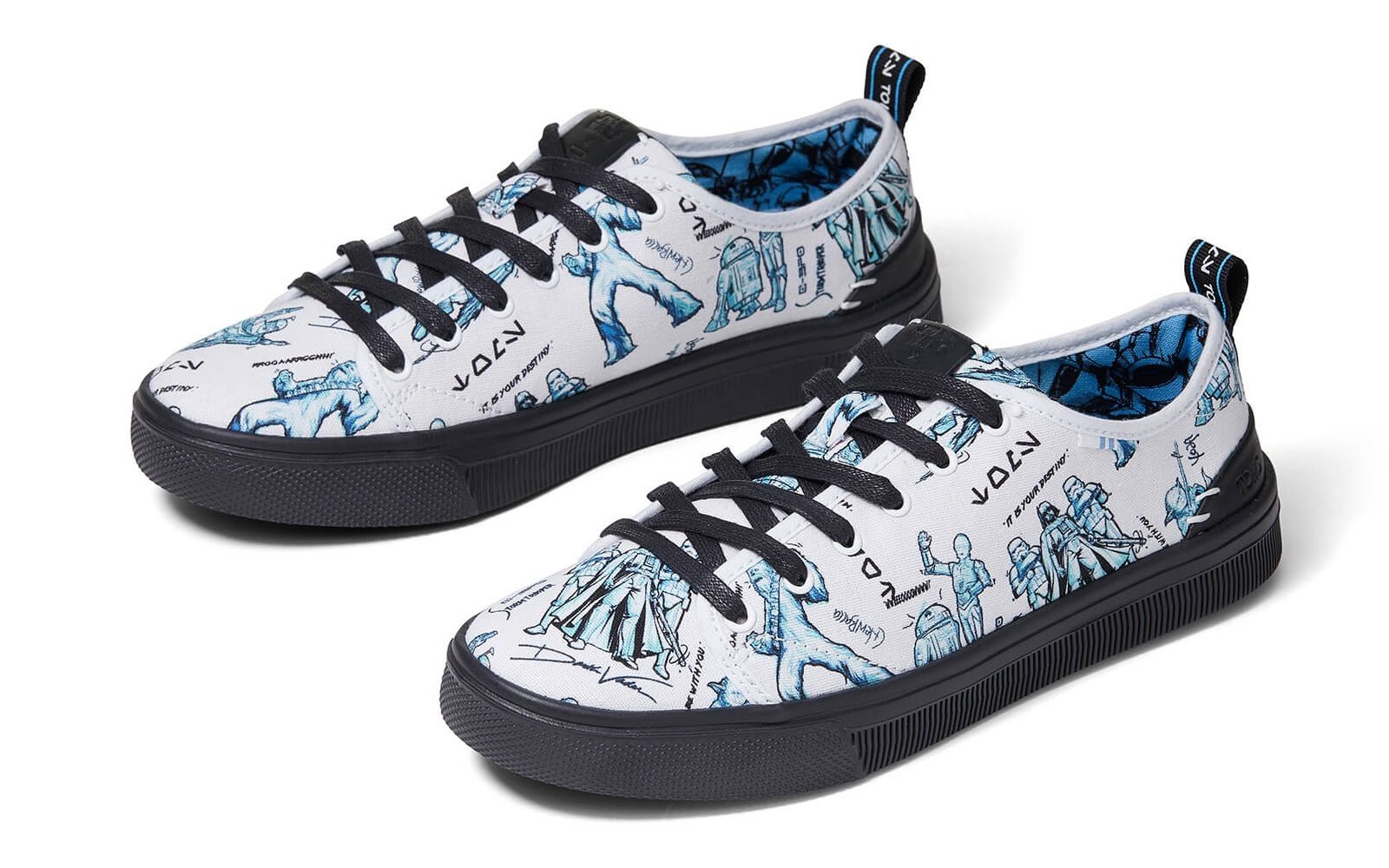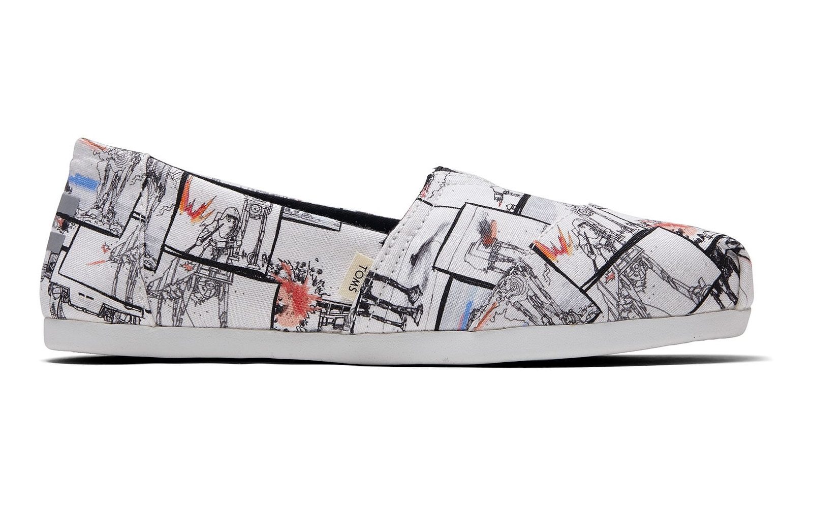 From the limited edition Star Wars x TOMS collection, our ultra-lightweight TRVL LITE sneaker, now featuring a custom, storyboard-inspired print complete with iconic Star Wars quotes and characters.