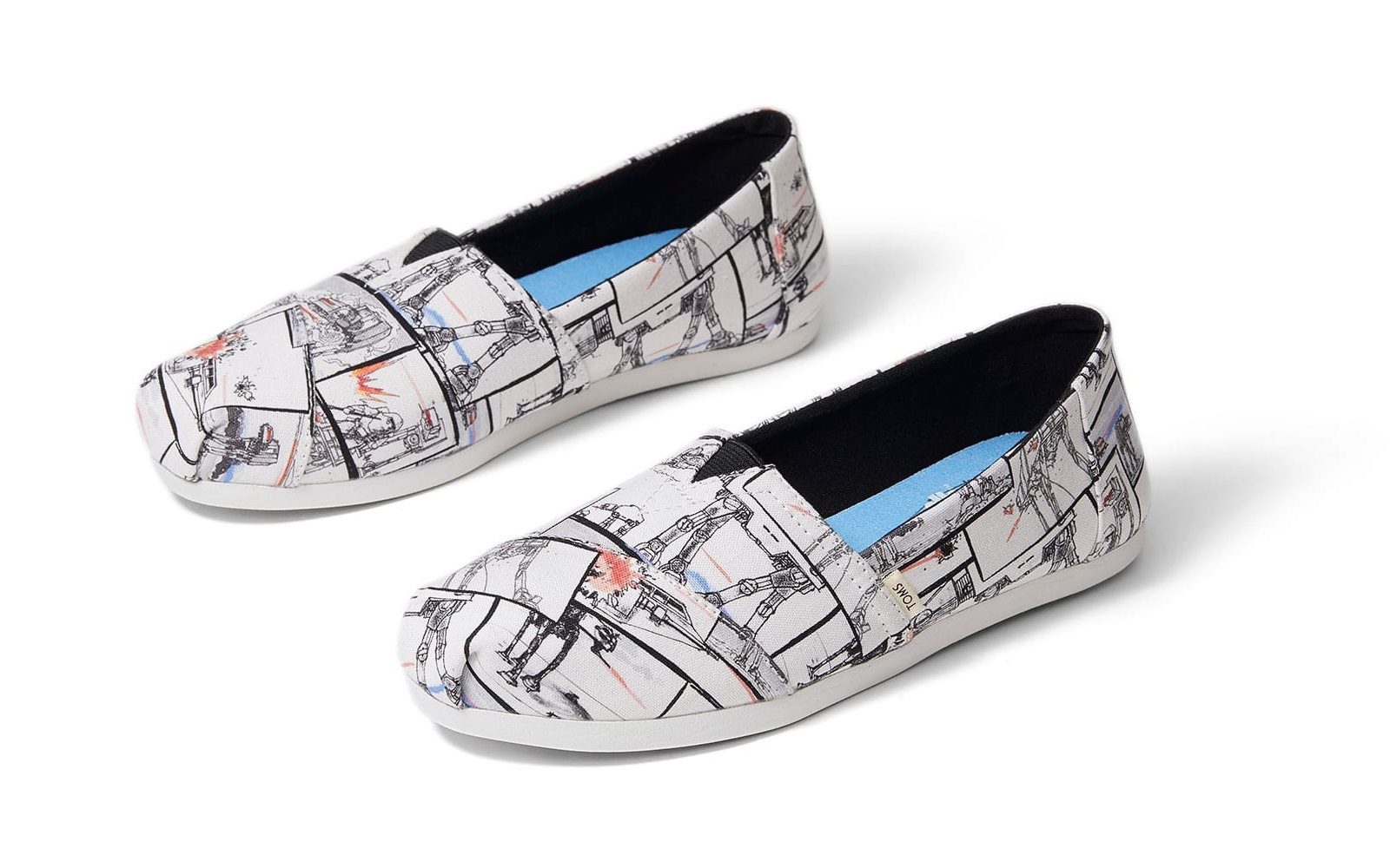 From the limited edition Star Wars x TOMS collection, our Classic canvas Alpargata featuring a custom, storyboard-inspired AT-AT print from the original trilogy film, Star Wars: The Empire Strikes Back.