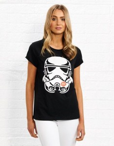 Out checking my local stores for Star Wars merchandise today, I found a women’s Star Wars t-shirt! Finding Star Wars apparel for adults in stores here in New Zealand is not that common – even rarer in women’s styles – so this was a very exciting find! The women’s black t-shirt features a white stormtrooper print on the front, with a red ‘lipstick’ detail. The shirt is priced at NZ$25.00 (at stores here in NZ), but is currently available on-line for AU$25.00, in sizes XXXS to XL (different to US sizing, check the size guide for measurements). The JayJays website prices/shipping costs are displayed in Australian dollars – they can ship to many international countries!