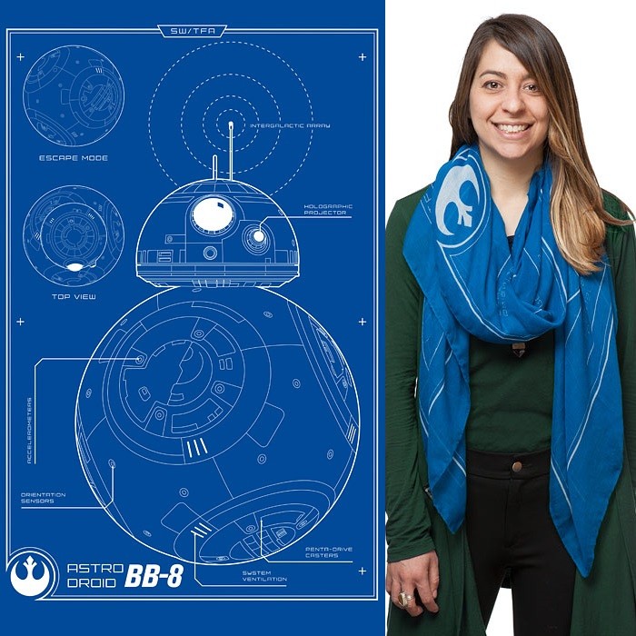 - BB-8 blueprint scarf – US$24.99 each