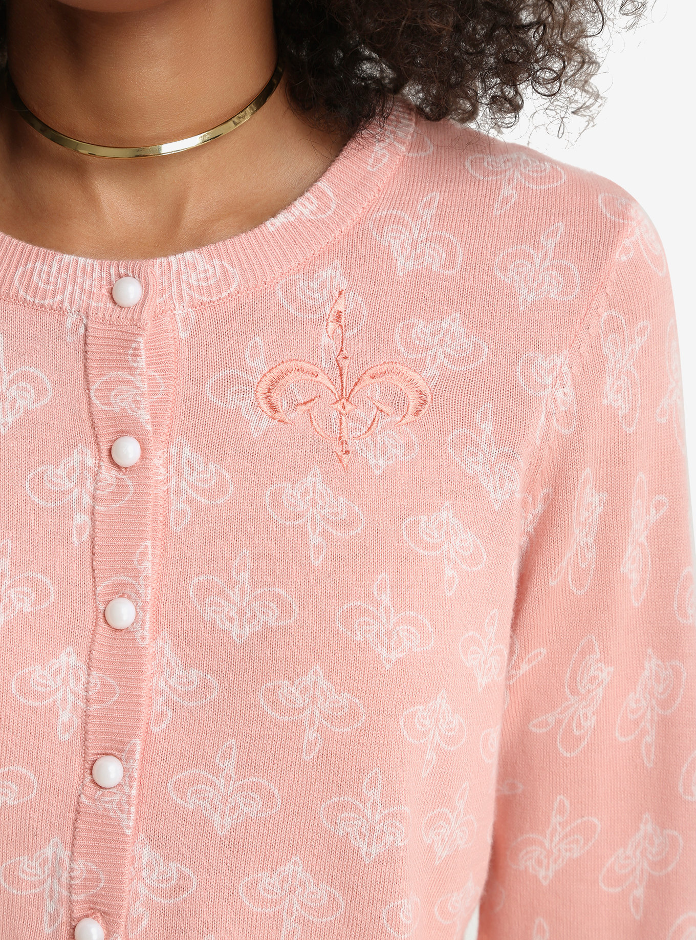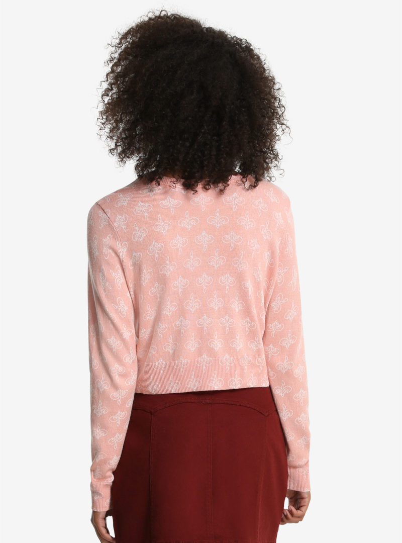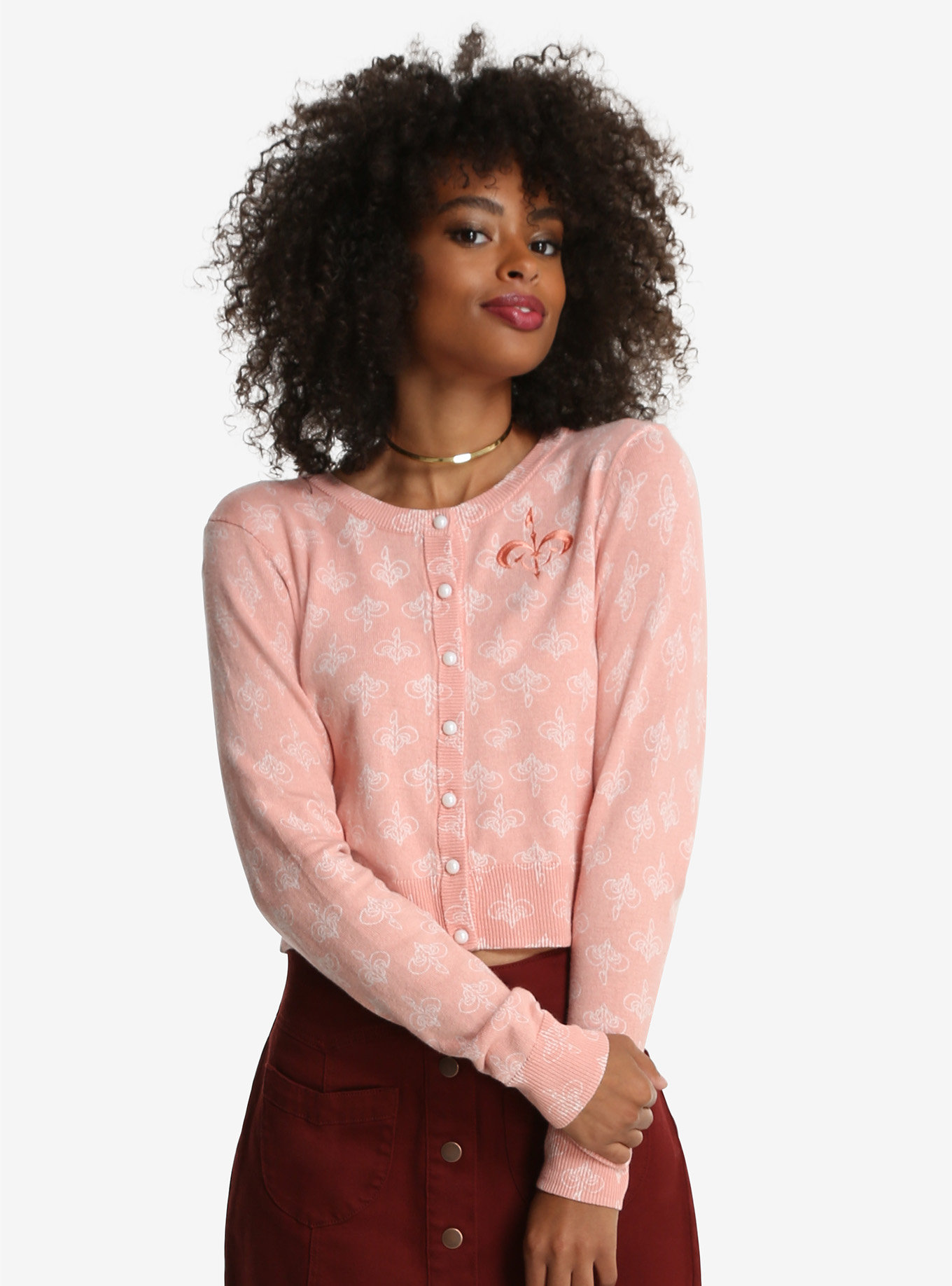 Whether you’re headed to a Senate meeting or just want to cover your shoulders as the sun goes down, this coral cardigan has got you covered. This long sleeved, cropped cardigan features the royal Naboo emblem embroidered on the chest, and has an allover white print of the emblem. This cardigan is finished off with pearlized buttons.