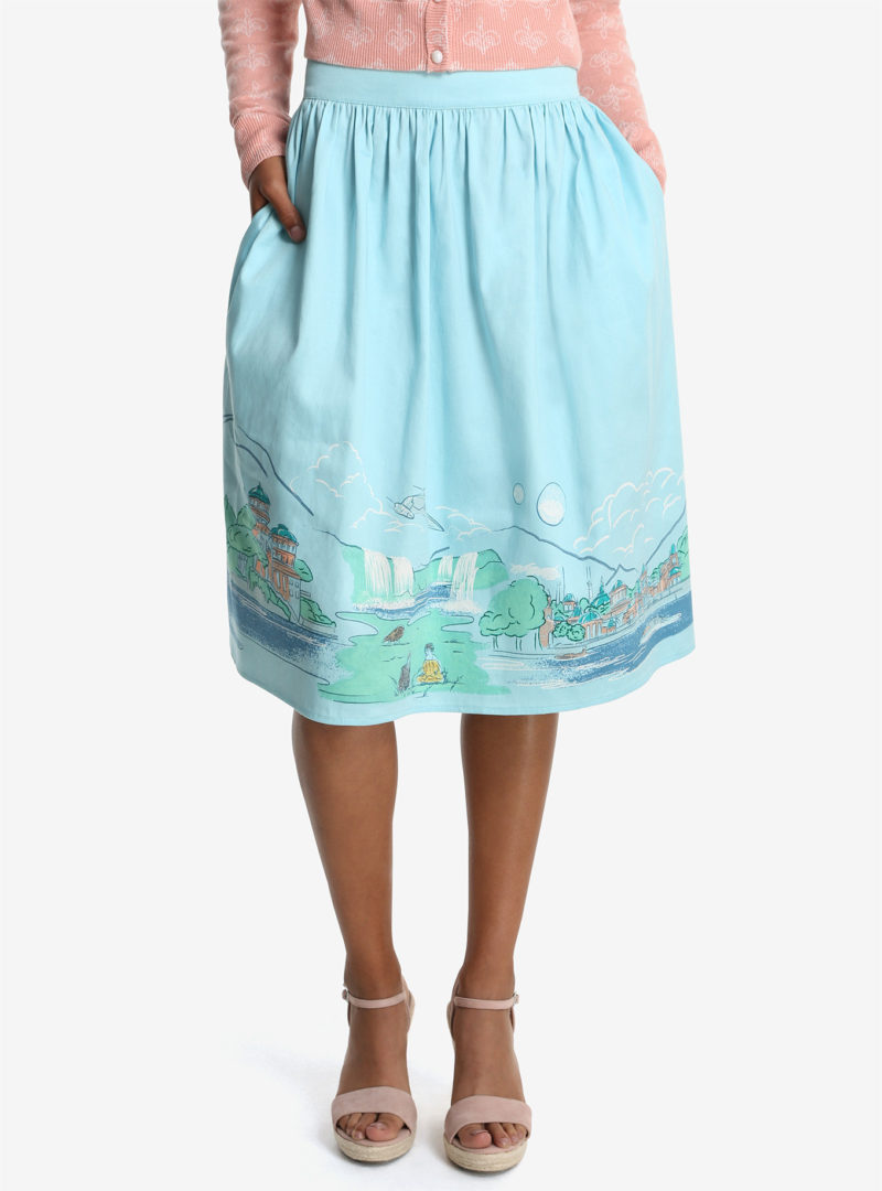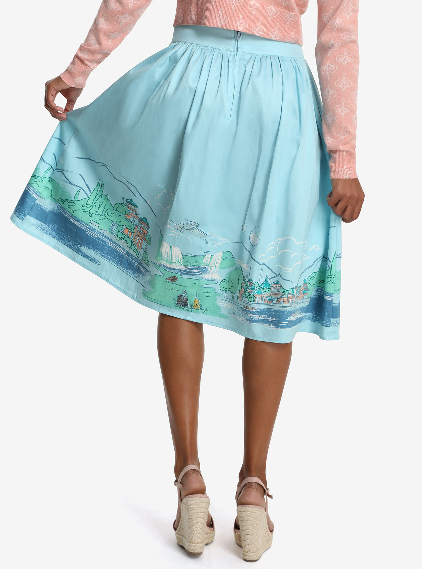 You don’t need to have a destination in mind to rock this A-line skirt from Star Wars, but it might be just right for an afternoon with your favorite person! Patterned with a serene landscape of Naboo—down to Anakin and Padmé having a romantic picnic—this quirky, colorful skirt will keep you stylish no matter where you find yourself.