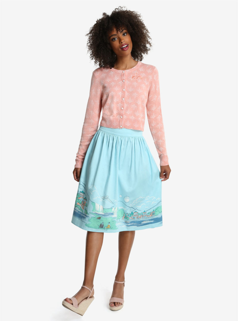 The long awaited Naboo themed mini collection from Her Universe is here! First mentioned during the Her Universe Facebook live chat back in January, it is very exciting to see these items finally available. The mini collection includes a long sleeved cardigan, and coordinating skirt.