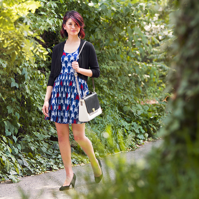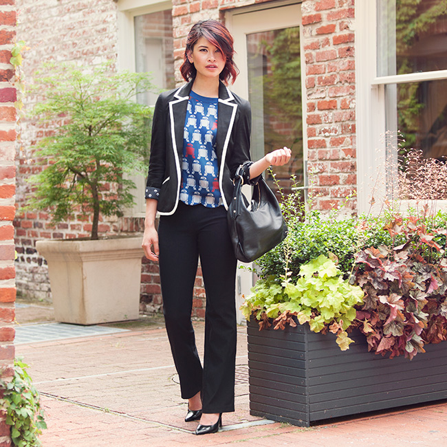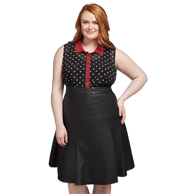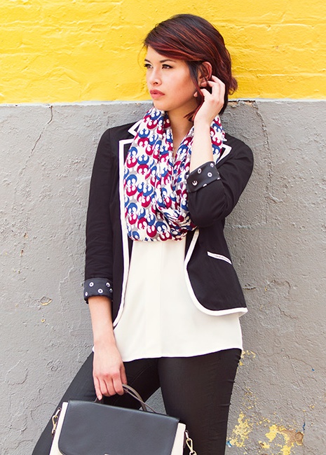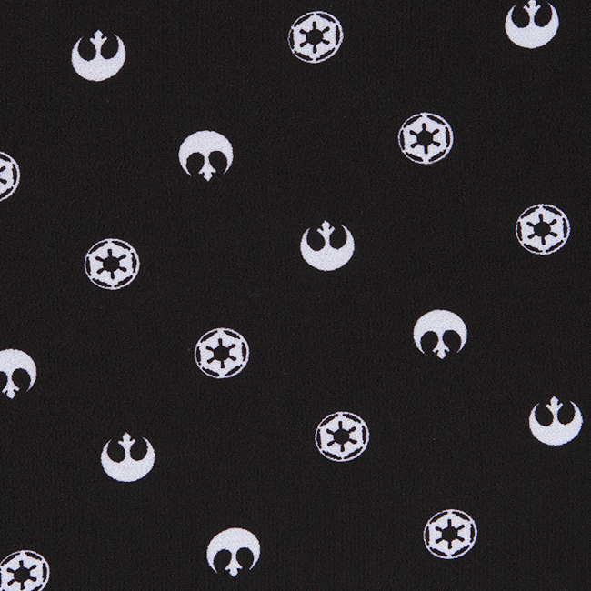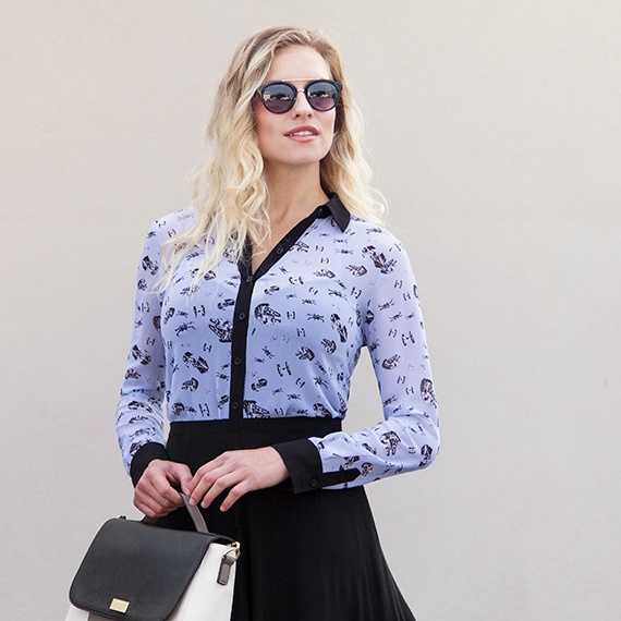 We were fortunate enough to team up with Ashley Eckstein once again to make this collection a reality. Our aim with these pieces was to give the Star Wars universe a fitting place in the work wardrobes of fangirls everywhere. These looks are understated — appropriate attire for a data entry temp or a senator. Some fashion’s all about the brand logos. We choose to make ours Empire or Rebel.