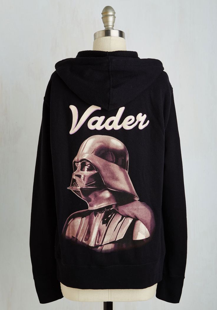 Modcloth has a new women’s Darth Vader hoodie available. The black zip-up hoodie has front pockets, with the Star Wars logo on the upper left front, and a print of Darth Vader on the back. Available in sizes S to XXL, the hoodie is priced at US$59.99 – Modcloth can ship internationally.