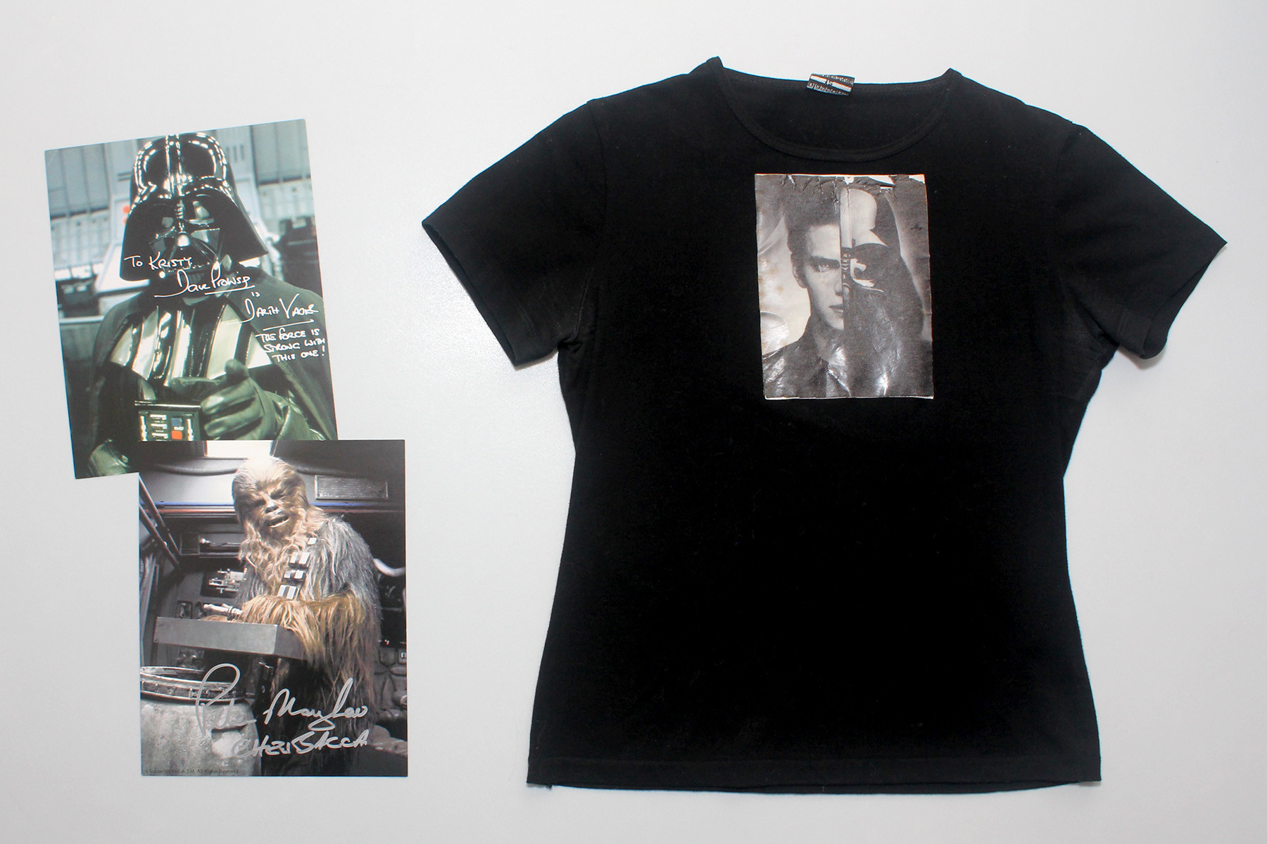 I bought a iron-on transfer kit for black t-shirts, and found an image online combining Anakin Skywalker and Darth Vader (I was/am a big Anakin Skywalker fan, of course). I picked up a women’s black t-shirt at a local store, and quickly turned it into a Star Wars t-shirt. I proudly wore it to the convention, and it soon became a a regular part of my everyday wardrobe.
