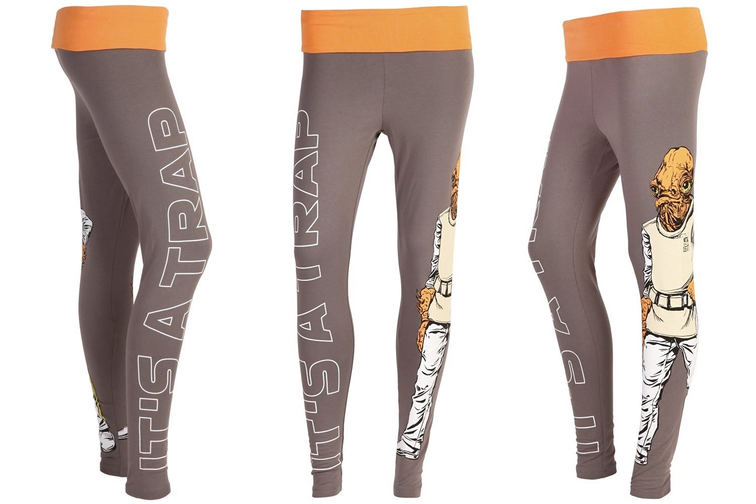 These fun women’s Admiral Ackbar lounge pants are available on Amazon. The women’s gray lounge pants feature a contrast orange waistband, a full length colour print of Admiral Ackbar on the left leg, and his classic quote ‘It’s A Trap’ printed on the right leg. Available in sizes XS to XXL, the pants are priced at US$35.99 to US$37.99 each (depending on size) – unfortunately Amazon does not ship these outside the US, but international customers can order via a mail forwarding service.