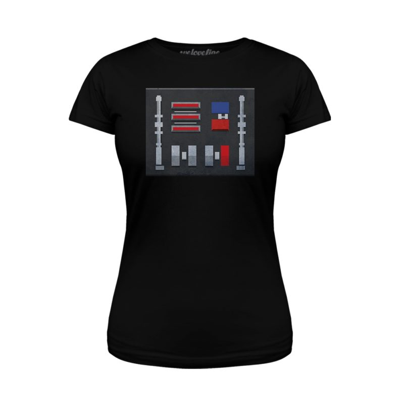 This women’s Darth Vader everyday cosplay style t-shirt is now available at We Love Fine. Made from 100% cotton, the black t-shirt features a front print of Darth Vader’s chest box (from ESB/ROTJ, based on the button and switch colours). The perfect tee for an everyday cosplay Darth Vader outfit!