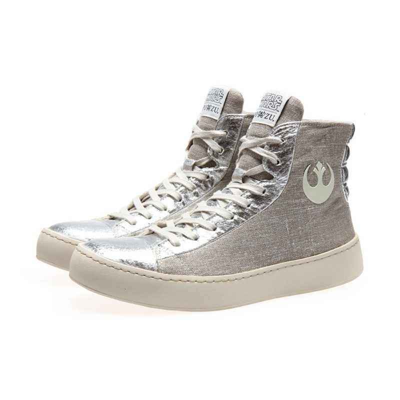 A Limited-Edition High-Top Silver Resistance Sneaker for women, under license with Lucasfilm and Disney.