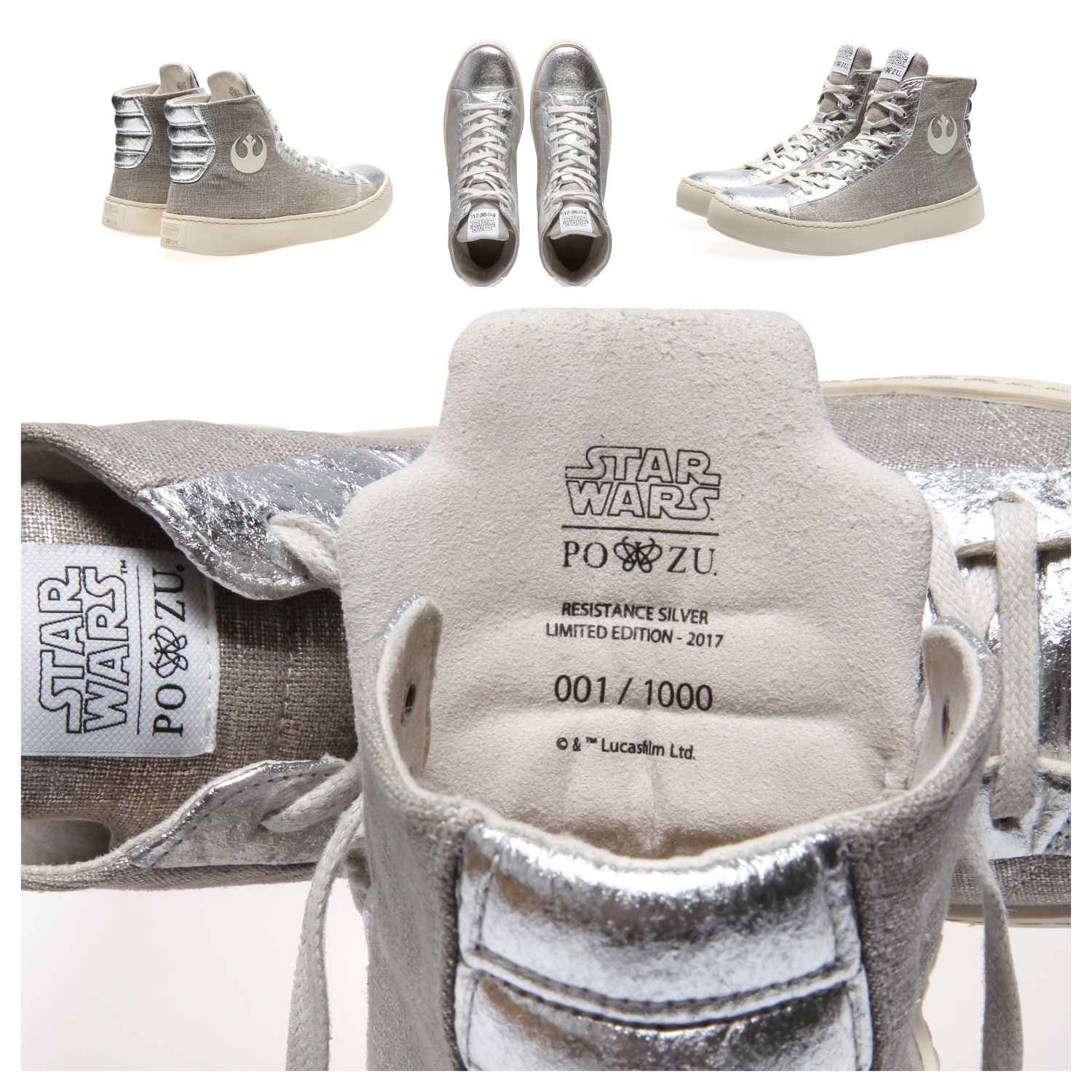 Po-Zu have released another addition to their fantastic Star Wars footwear range – Resistance silver sneakers! This new design is available in women’s sizes, and is a limited edition item – each pair is numbered out of only 1000 made.