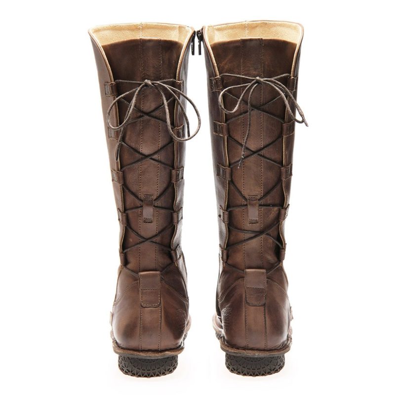Knee high leather boot featuring a fully adjustable calf/rear lace-up system and a convenient inside zip. A built-in shock absorbing coconut fibre Foot-Mattress™ combines with a highly flexible natural rubber sole. ‘Star Wars™/Po-Zu’ co-brand heat embossed on heel.