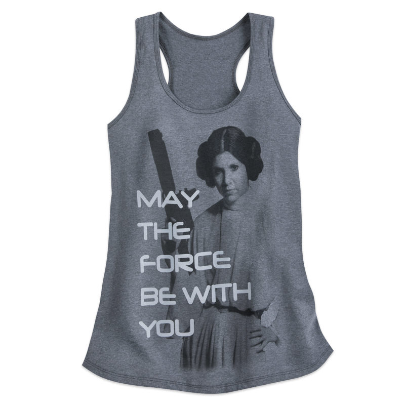 This women’s Star Wars Princess Leia tank top is now available at Shop Disney. Part of a new Star Wars family shirt collection, the women’s Princess Leia tank top features a front print of Princess Leia from A New Hope, with the text ‘May The Force Be With You. The heather grey tank top is made from 50% cotton / 50% polyester – check out the full Star Wars family shirt collection here.