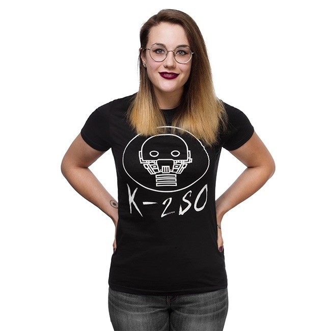 ThinkGeek has a new women’s Rogue One t-shirt available, featuring K-2SO! The black t-shirt features white line art of the droid K-2SO, along with the text ‘K-2SO’ underneath. From what we have have seen of K-2SO in the trailers, I love the droid already!