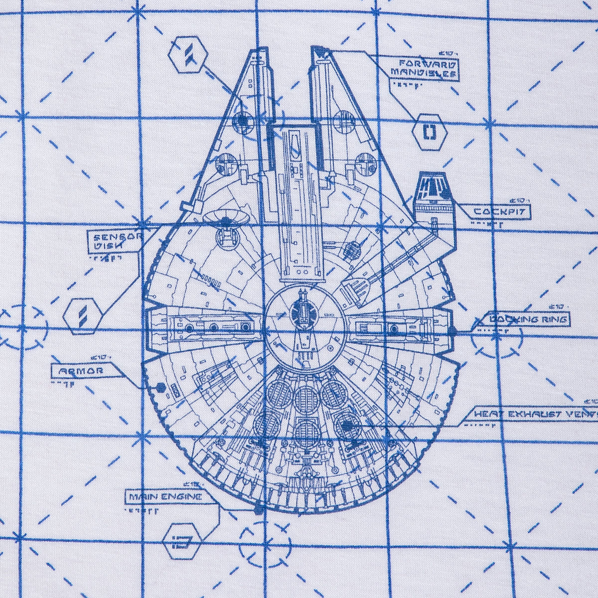 Share how you built your interstellar style from scratch with this Star Wars t-shirt for women. Featuring blueprint-style X-Wing, TIE-fighter, and Millennium Falcon graphics, this tee is out of this world!