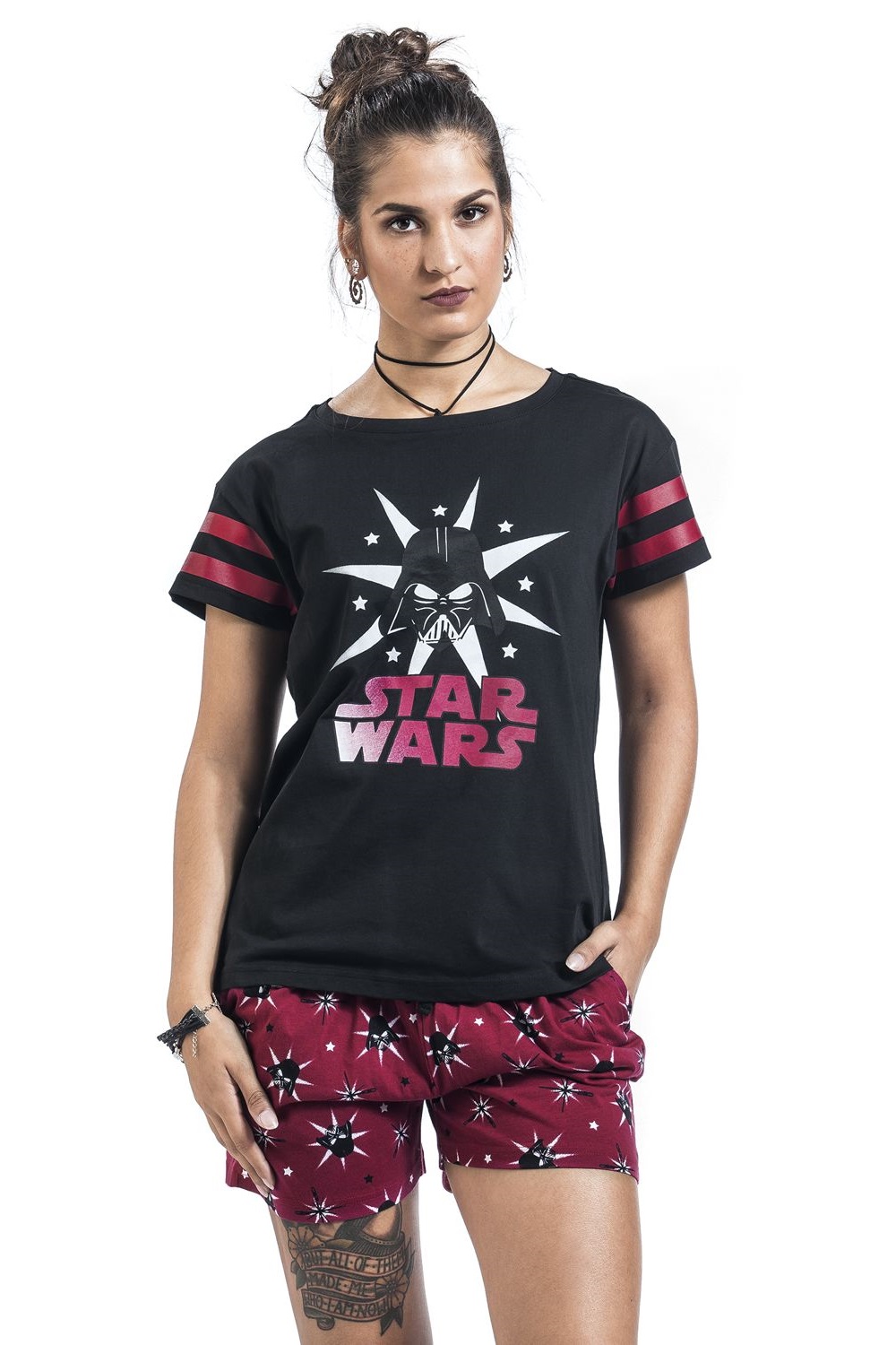 This women’s Star Wars Darth Vader sleepwear set is now available at EMP Online. Made from 100% cotton, the pyjama set includes a t-shirt and shorts – the t-shirt features a large front print of Darth Vader, while the shorts featuring a smaller repeating print of the same design. The black and red colour scheme is perfect for fans of Darth Vader and the Dark Side!
