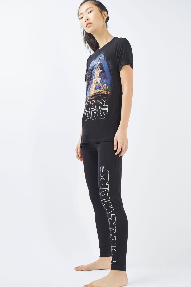 This women’s Star Wars nightwear set is now available at Topshop. The set includes a sleep tee and leggings – the t-shirt features the classic poster artwork by the Hildebrandt brothers, while the leggings feature the Star Wars logo.
