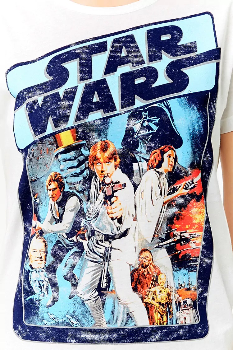 This women’s Star Wars pyjama t-shirt is now available at Forever 21. Made from 60% cotton, 40% polyester, the white t-shirt features a front print of the classic A New Hope poster artwork by Tom Chantrell.