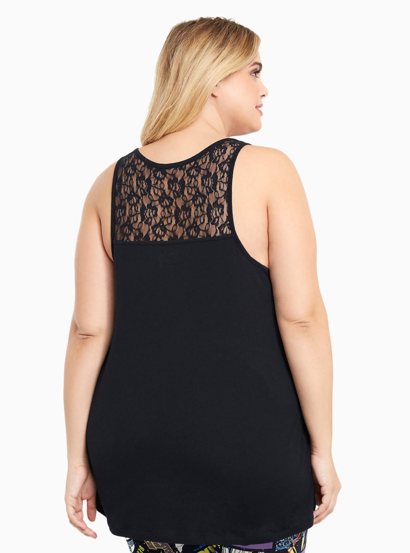 IDK about you, but the dark side looks pretty good to us on this sleep tank! The lightweight and comfy black knit gets some added air with a lace inset back. A throwback-inspired “Star Wars” graphic turns up the technicolor.