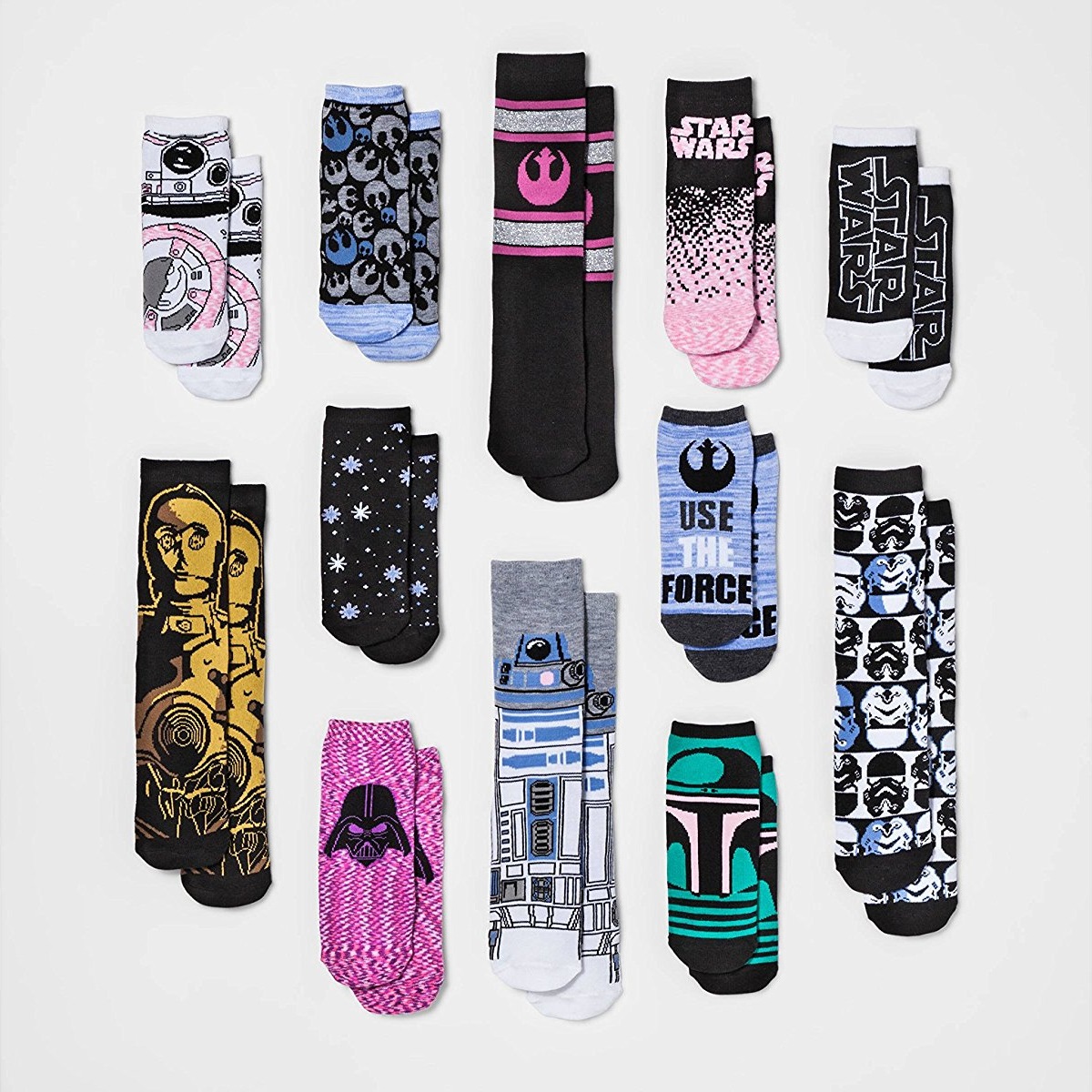 - Women’s Star Wars sock advent 12-pack – US$29.99 to US$59.99 per pack – women’s sizes 4-10