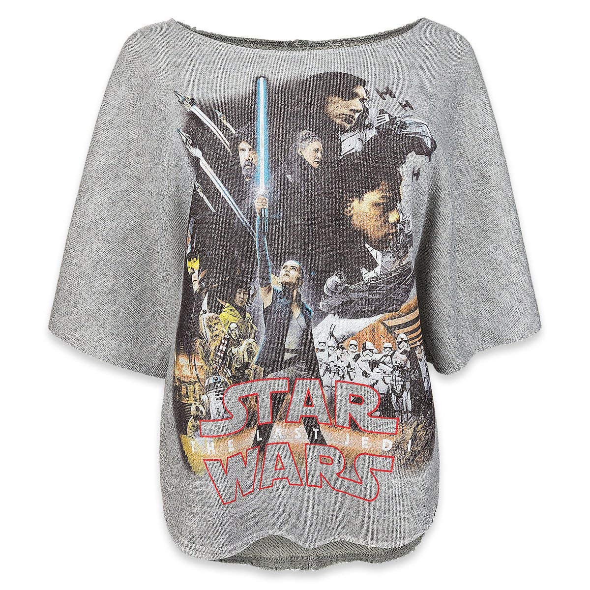 This women’s Star Wars The Last Jedi sweatshirt is available on Amazon. Made from 60% cotton / 40% polyester, the grey sweatshirt features a front artwork print of characters from The Last Jedi. The sweatshirt has a wide neckline, short sleeves, and a relaxed fit.