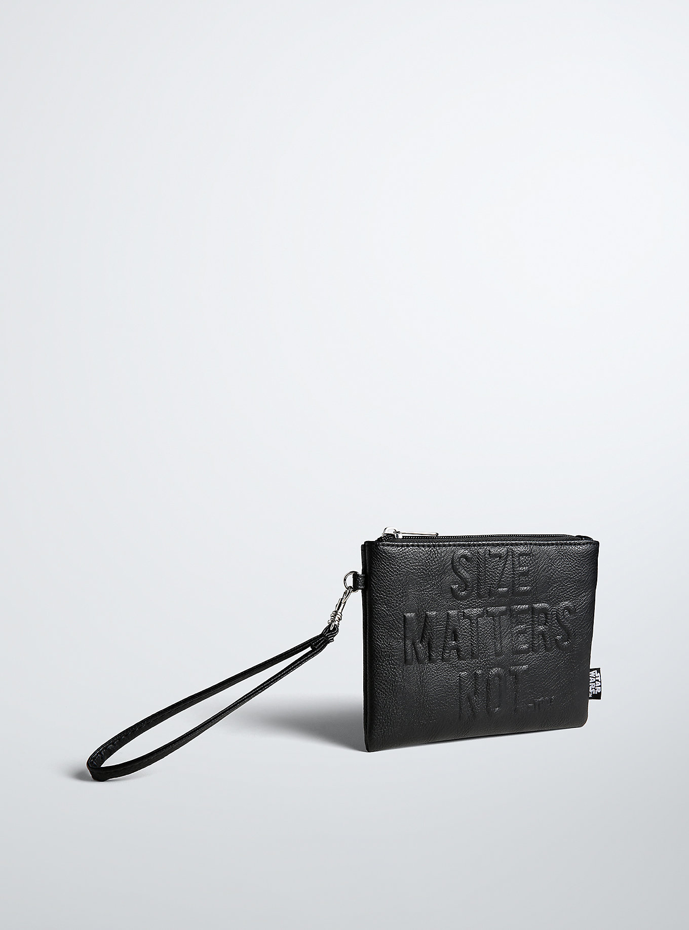 Torrid has a new women’s Star Wars wristlet with a Yoda theme. The black faux leather wristlet measures 6.5″ x 5″ and features the text ‘Size Matters Not’ embossed on the front, and a green Yoda silhouette on the back. The wristlet has a 6″ long detachable wrist strap, and is priced at US$18.50 each – Torrid can ship internationally.